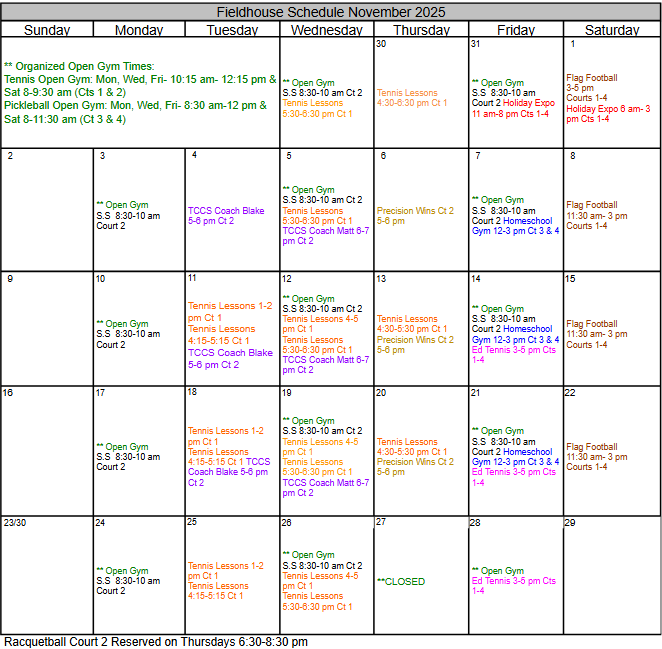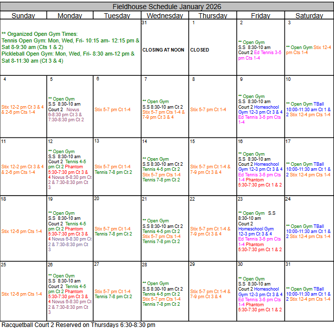 Pickleball Tournament Info located on our "Fieldhouse Page"
